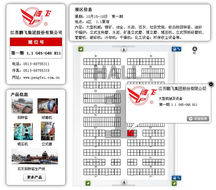 江蘇鵬飛集團(tuán)在廣交會(huì)上精心布置展位,印發(fā)各類設(shè)備的介紹手冊(cè),整體模型展示水泥生產(chǎn)線產(chǎn)品,委派具有多年工作經(jīng)驗(yàn)的銷售、技術(shù)、售后等專業(yè)工作人員為顧客詳細(xì)介紹新產(chǎn)品、新技術(shù),全面分析解答各類設(shè)備從購(gòu)買到投產(chǎn)使用以及售后服務(wù)等每個(gè)環(huán)節(jié)的問(wèn)題,為您排疑解難,與您達(dá)成共識(shí)。同時(shí),也希望能和更多的國(guó)內(nèi)外公司加強(qiáng)聯(lián)系,互相合作,為客戶提供更加完美的產(chǎn)品。