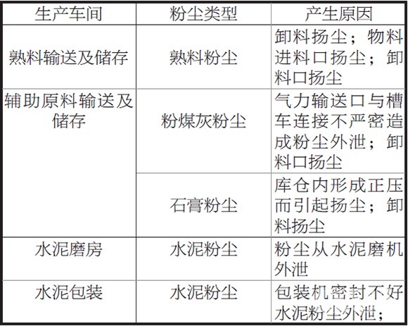 表1 水泥粉磨站粉塵污染來源統(tǒng)計(jì)表