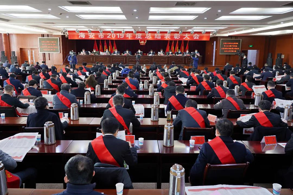 3月14日上午,海安市召開2019年度總結(jié)表彰大會(huì),表彰全市各條戰(zhàn)線涌現(xiàn)的先進(jìn)單位和個(gè)人,由于受新型冠狀肺炎疫情的影響,會(huì)議實(shí)施一人一桌簡(jiǎn)便召開。會(huì)議設(shè)主會(huì)場(chǎng)和分會(huì)場(chǎng),由海安融媒體中心進(jìn)行現(xiàn)場(chǎng)直播。市四套班子全體負(fù)責(zé)人,各區(qū)鎮(zhèn)、各部門主要負(fù)責(zé)人、受表彰對(duì)象代表出席會(huì)議。會(huì)議由于立忠市長主持,宣讀表彰決定,獲獎(jiǎng)單位分別上臺(tái)領(lǐng)獎(jiǎng),顧國標(biāo)書記做了重要講話。鵬飛集團(tuán)榮獲海安市委、市政府授予的杰出貢獻(xiàn)獎(jiǎng)、工業(yè)百強(qiáng)企業(yè)、開放型經(jīng)濟(jì)先進(jìn)企業(yè)、海安市市長質(zhì)量獎(jiǎng)、王家安董事長當(dāng)選六星級(jí)企業(yè)家。