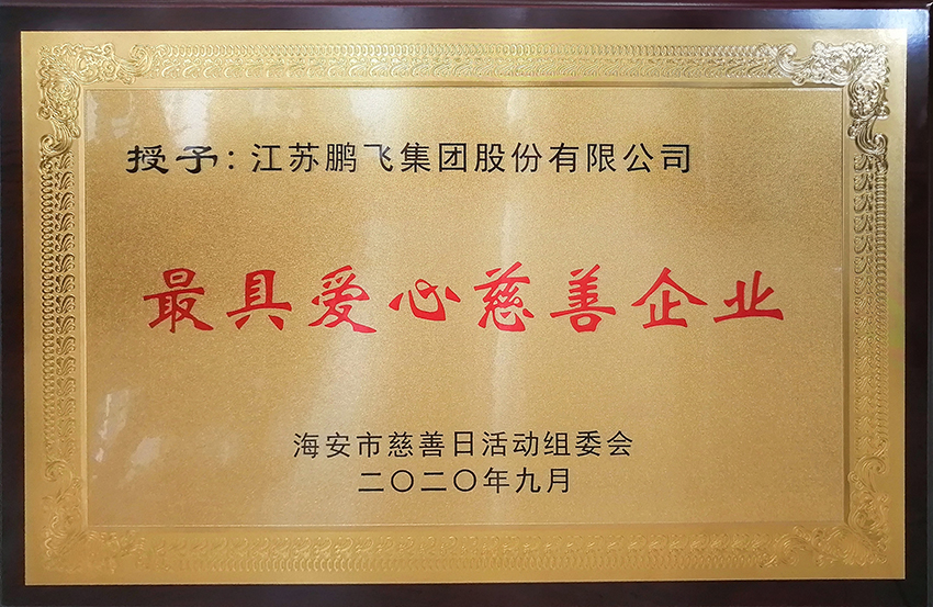 近日,海安市慈善基金會表彰了慈善工作先進集體和先進個人,基于在履行社會公益責任方面的突出表現(xiàn)和良好反響,江蘇鵬飛集團被慈善基金會授予“最具愛心慈善企業(yè)”稱號。