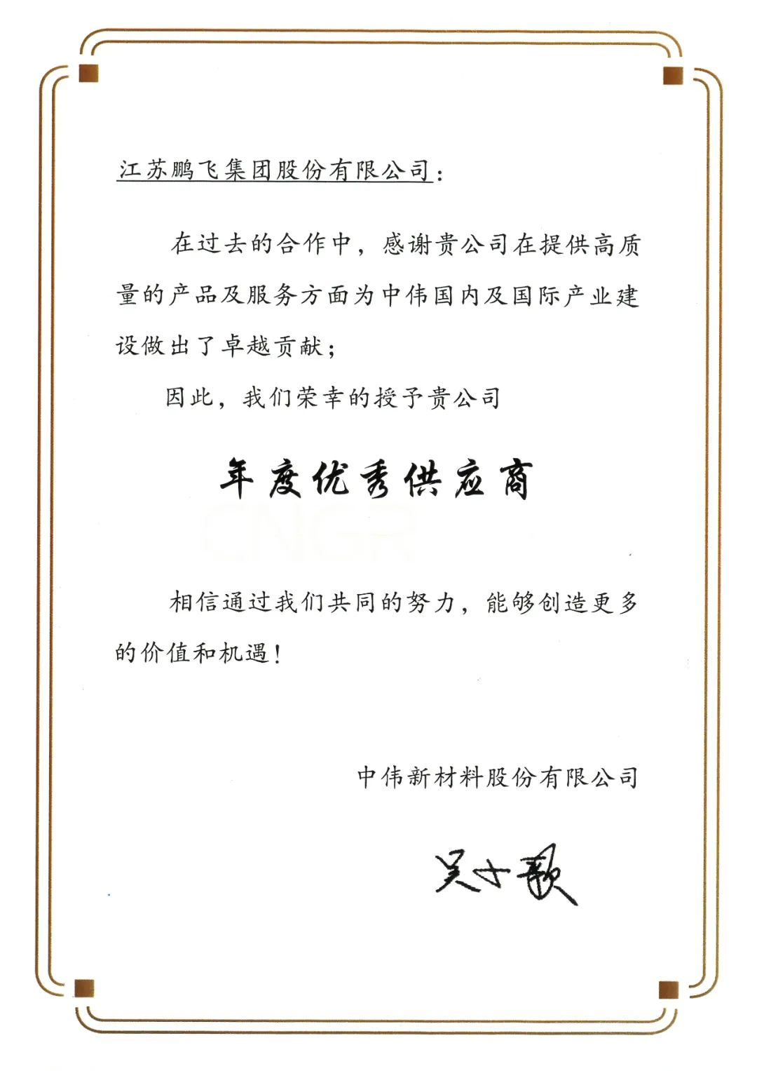 該項(xiàng)目獲得客戶的高度認(rèn)可,鵬飛集團(tuán)獲評(píng)“年度優(yōu)秀供應(yīng)商”、“2024年度海外項(xiàng)目杰出貢獻(xiàn)伙伴”。