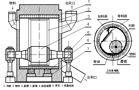 它由殼體部分、回轉部分、傳動裝置和熱風管等部分組成,內(nèi)部分級循環(huán)氣流由機外熱風系統(tǒng)提供。 ,