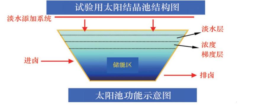 (六)太陽(yáng)池法 鹽梯度太陽(yáng)池法是針對(duì)低鎂鋰比、高濃度碳酸鹽型鹽湖的一種工藝。利用當(dāng)?shù)氐蜏貧夂蛟邴}田進(jìn)行凍硝-蒸發(fā)濃縮,使Li+接近飽和點(diǎn)并析出Na2SO4?10H2O,得到高鋰混鹽鹵水(鋰接近飽和點(diǎn));再進(jìn)入梯度太陽(yáng)池分為9層不同濃度的鹵水,日照升溫將碳酸鋰結(jié)晶析出,產(chǎn)出品位約為50%-65%的碳酸鋰結(jié)晶體。