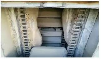 原來(lái)設(shè)計(jì)是粉磨水泥,調(diào)配原料經(jīng)皮帶輸送提升機(jī),再到鎖風(fēng)閥,后來(lái)增加礦渣輸送經(jīng)皮帶輸送到提升機(jī),皮帶機(jī)機(jī)頭易堵,提升機(jī)殼體黏料(如圖3所示)。